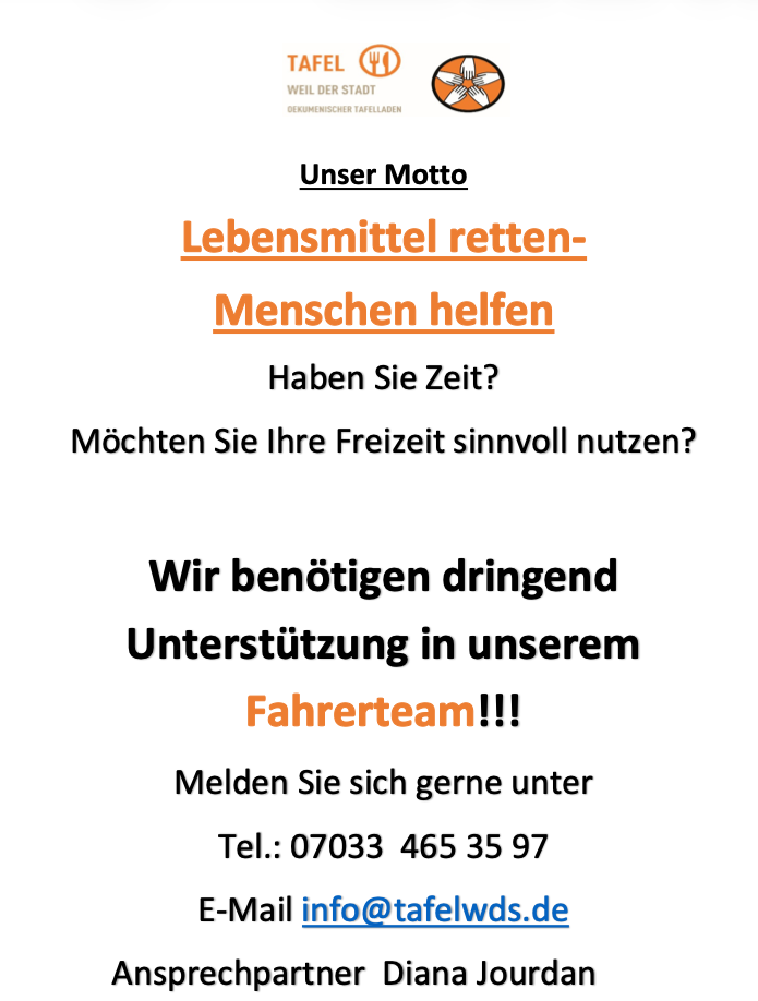 Der Eintritt ist frei. Wir freuen uns über Spenden für den Weil der Städter Tafelladen!